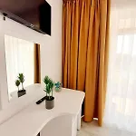 El Tasos - Rooms With See View Eforie Nord está situado a tan solo 5 minutos a pie del Paseo Marítimo de Eforie Nord, y a tan solo 250 metros del Lago Belona. Este apartamento frente a la playa dispone de una terraza y se encuentra justo al lado del Parque Acuático de Eforie.